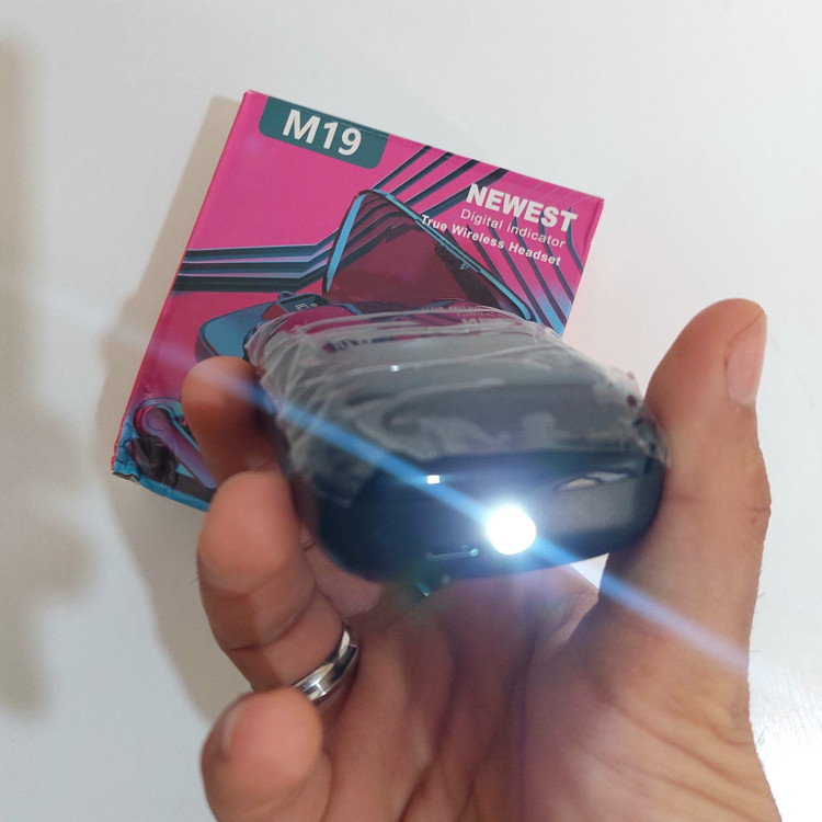ایرپاد m19 نسخه های مختلف و درجه 2 و 3 داره که پاوربانک و کیفیت صدای ضعیف تر و بلوتوث قدیمی تری دارن اما ایرپادی که فروشگاه ما تقدیم شما میکنه بهترین نسخه و درجه 1 بازاره، m19 تنها ایرپاد زیر 300 هزار هست که چراغ قوه و پاوربانک رو باهم داره و ضد رطوبت و تعریق و پاشش آب هست